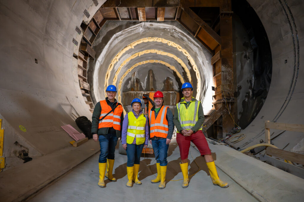 SWV Baden-Bezirksvorsitzende Martina Kerschbaumer, Roland Binder, Michael Pyerin und Stefan Kerschbaumer konnten hautnah erleben, wie beeindruckend moderner Tunnelbau funktioniert – inklusive der mächtigen Tunnelbohrmaschine, die sich ihren Weg unter Wien bahnt.